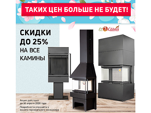 Скидка на камины марки Экокамин до 25% до 30.04.2026