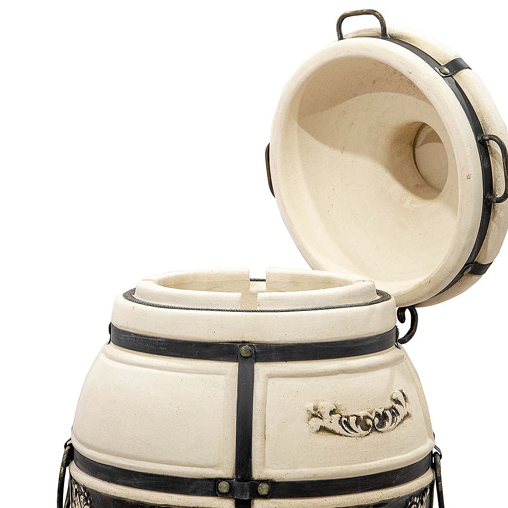 - Имеет крышки двух уровней (колпачок и крышку). Колпачок позволяет не терять тепло при открывании тандыра. А крышка даёт возможность легко открывать тандыр и закладывать в него продукты.