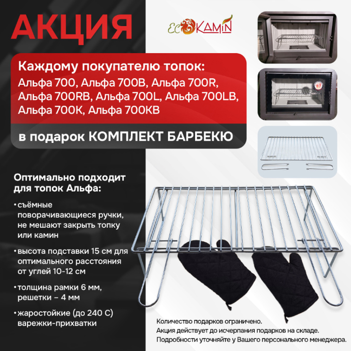 Каминная топка АЛЬФА 700КВ с контргрузом