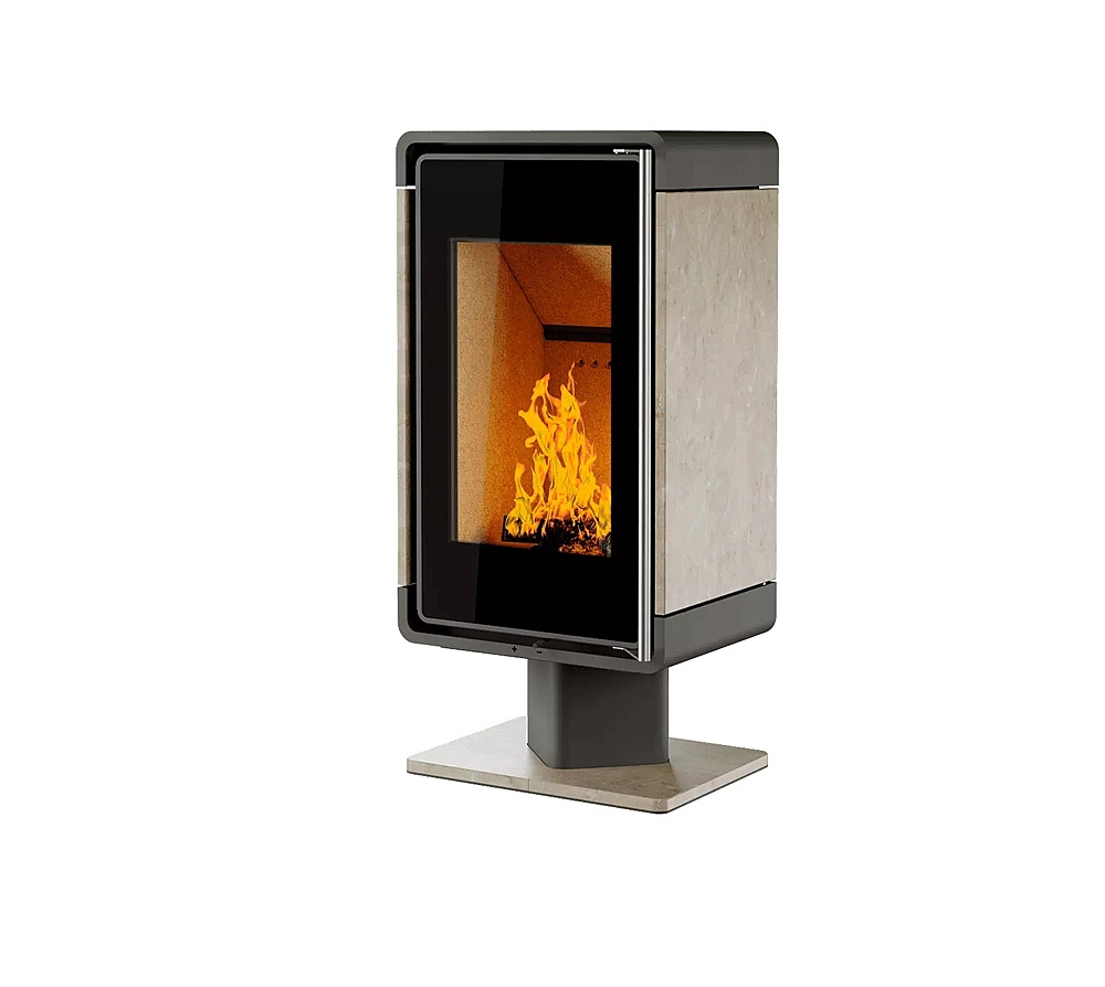 Печь-камин АСТОВ КУБ ПК 4581 В камне на короткой ноге Мрамор Крема Марфил
