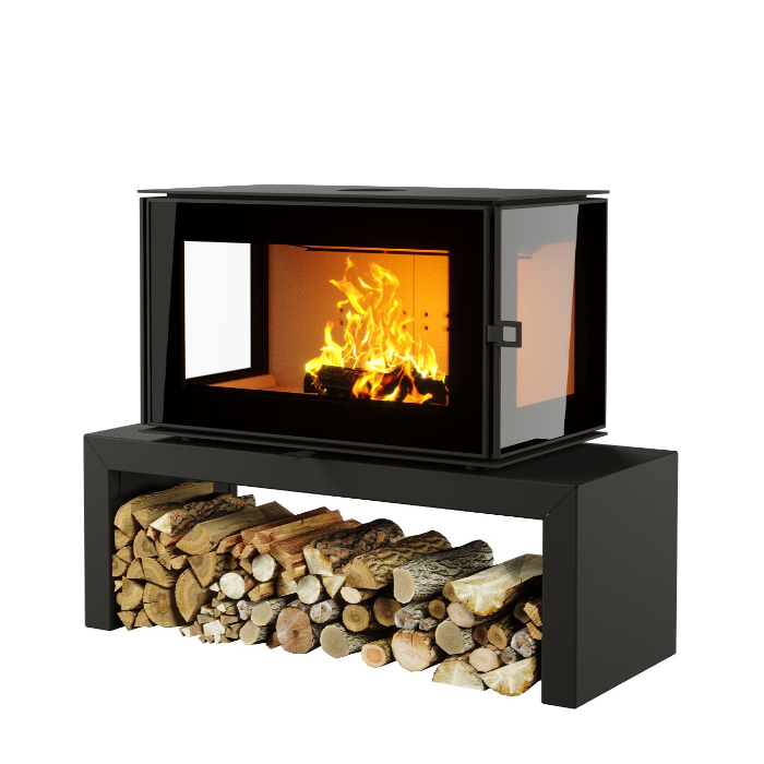 Печь-камин КУБ 800 сочетает в себе эстетику, функциональность и экологичность. Её минималистичный корпус из стали, окрашенной в черный цвет, придает ей элегантный и современный вид.